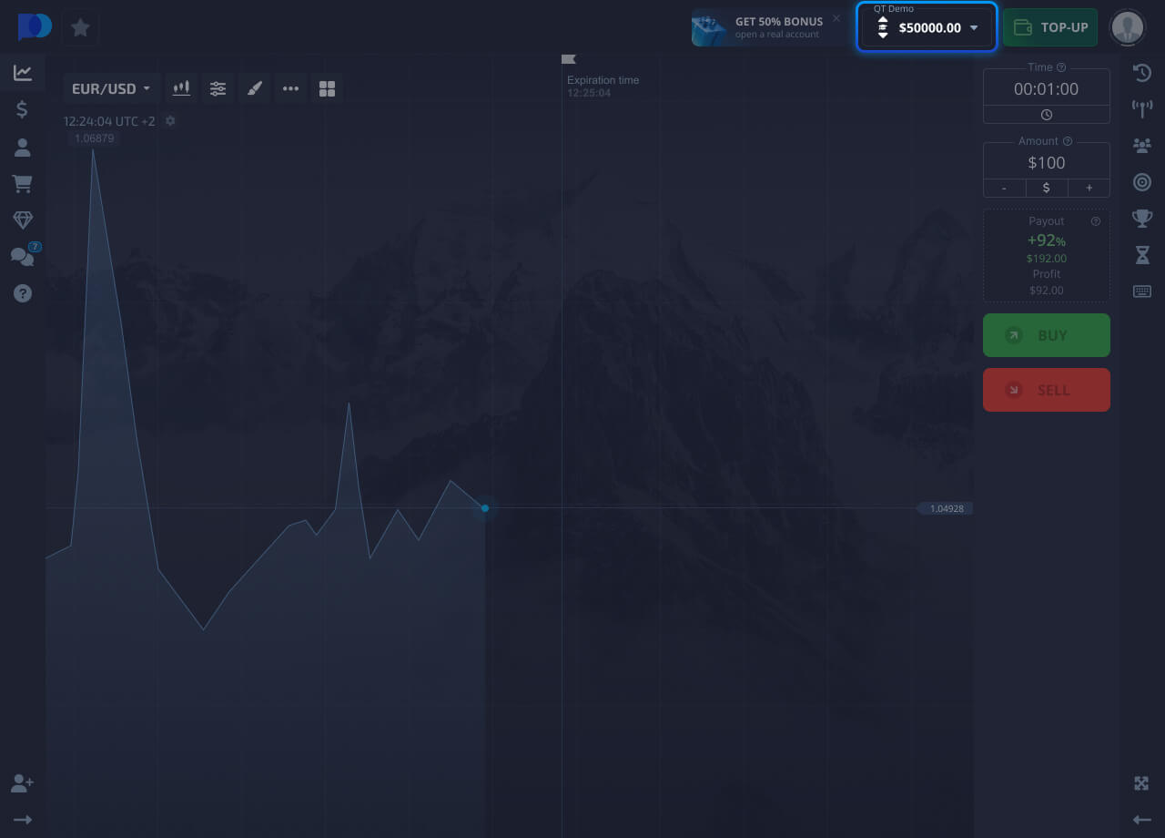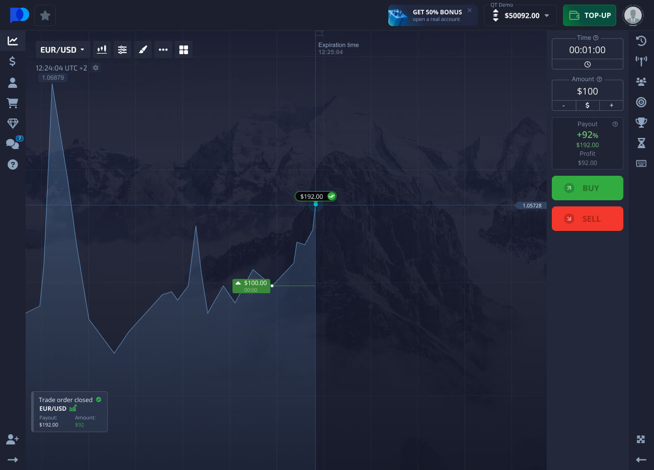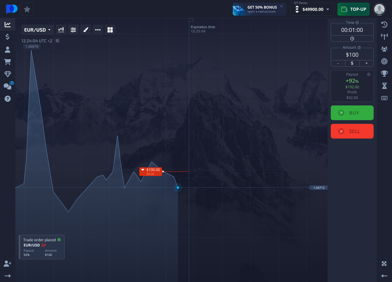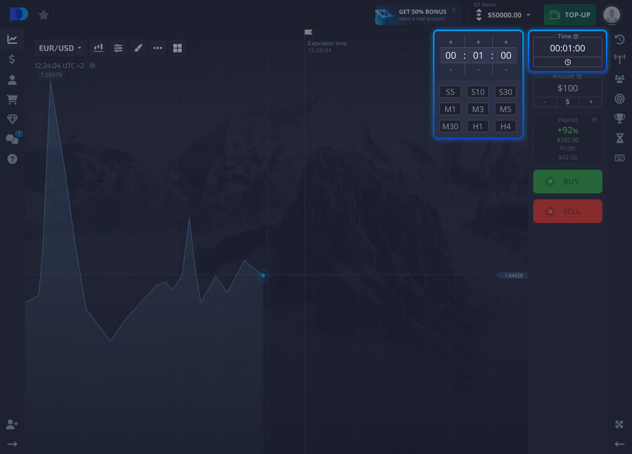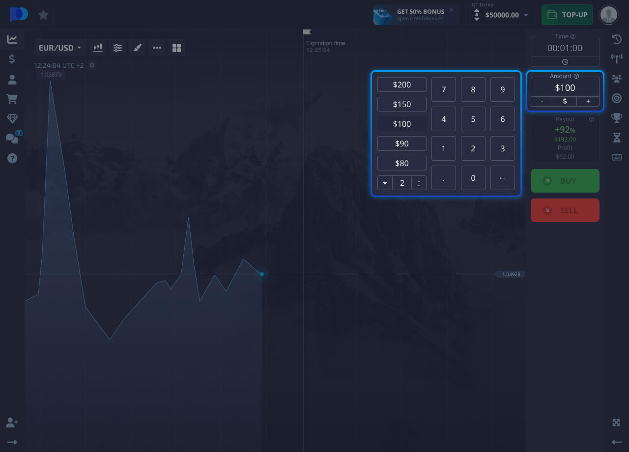 Set the investment amount, this amount will be deducted from the balance of your trading account to open a trade.