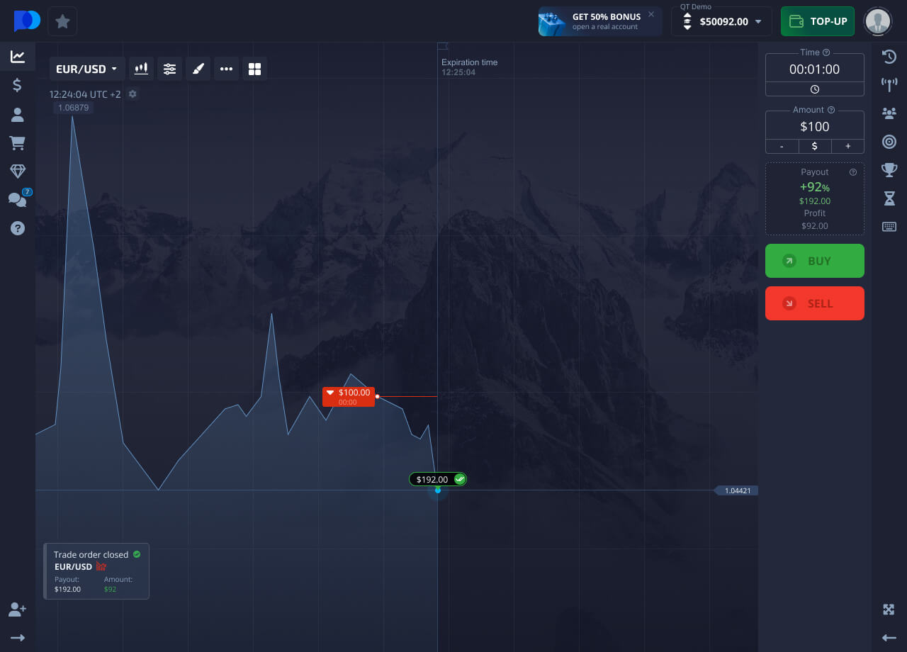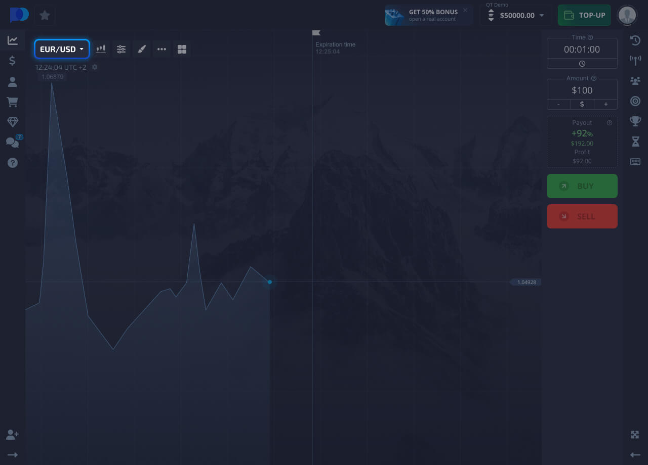 Click the Buy or Sell button if you think the price of the asset will rise or fall.