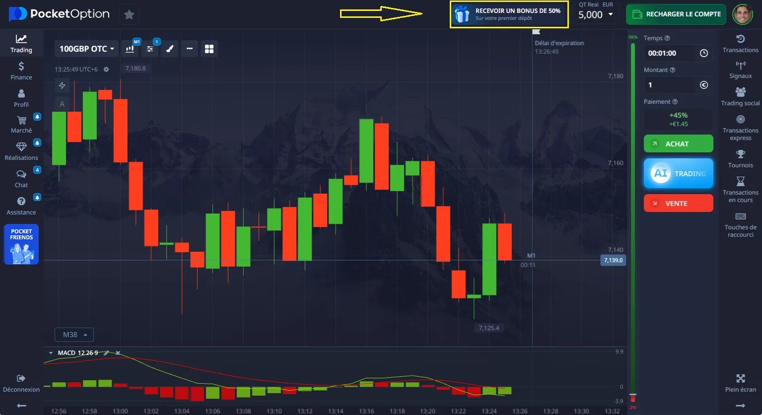 🎁 Pocket Option offre un bonus de dépôt de 50% à ses nouveaux clients.