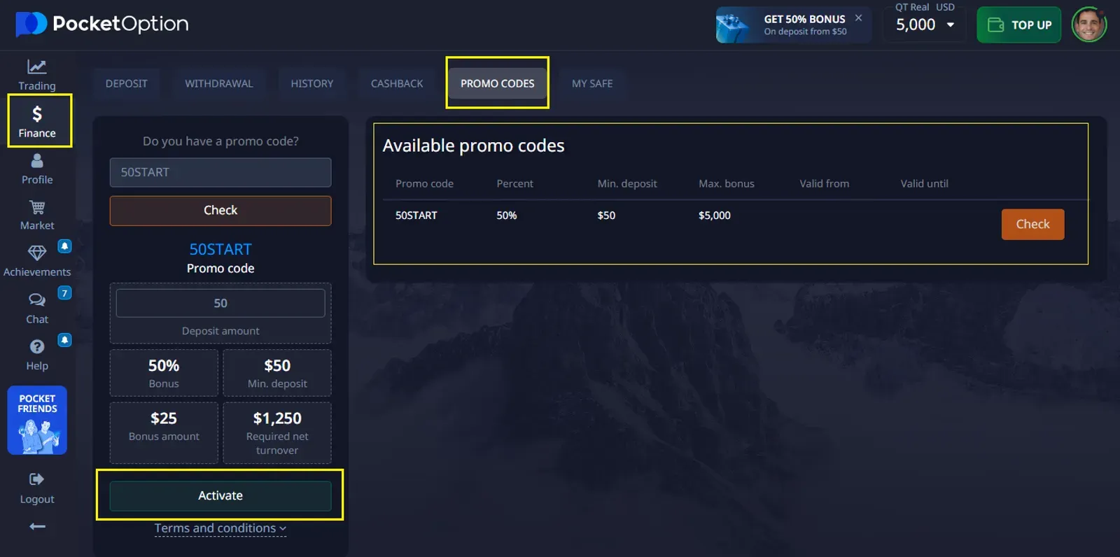 Comment utiliser un code promo Pocket Option