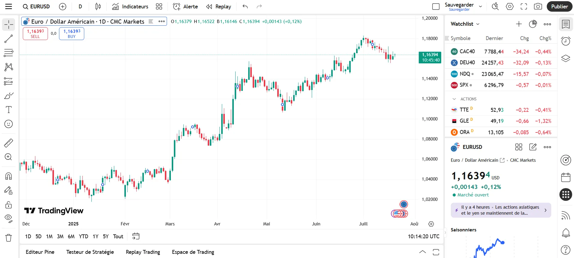 - Paires de devises (Forex) : Des paires principales comme EUR/USD et GBP/JPY aux exotiques, vous permettant de trader sur le plus grand marché financier mondial.