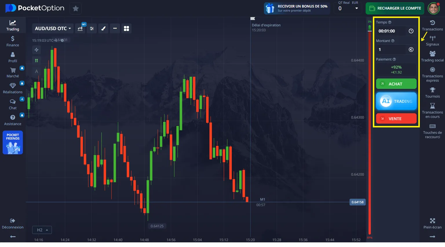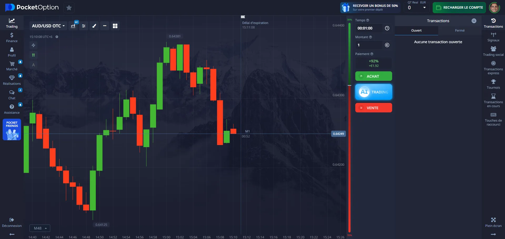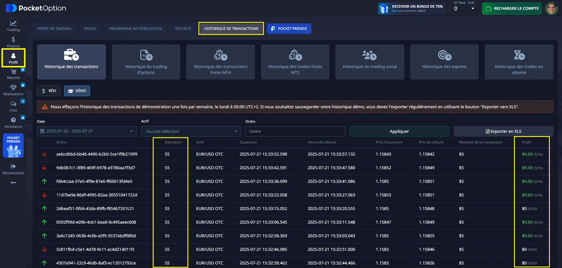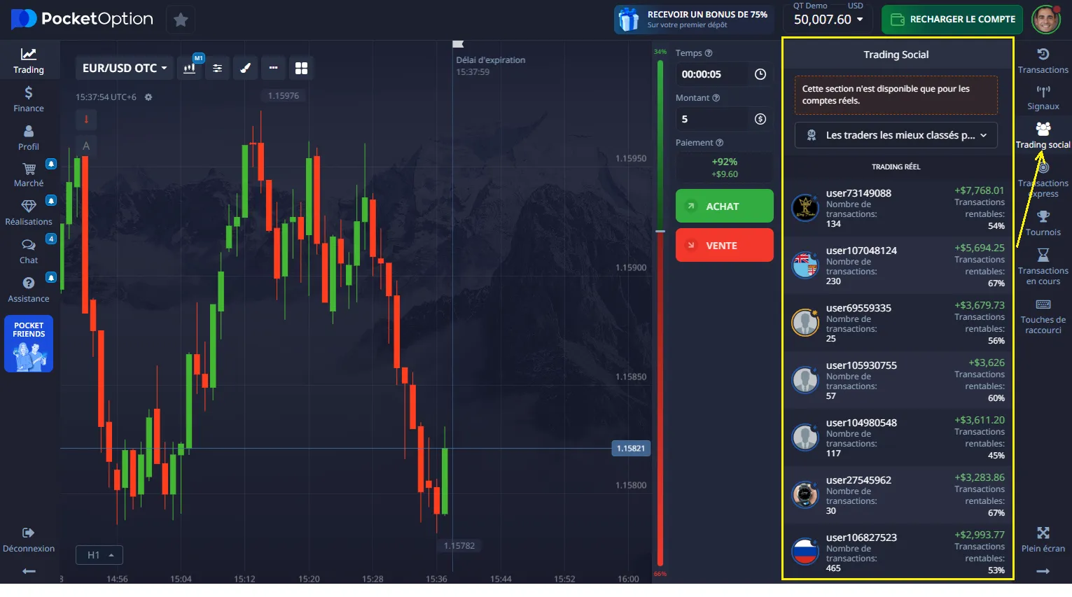 Tous vos trades réels, bonus, tournois, et retraits restent strictement sur Pocket Option.