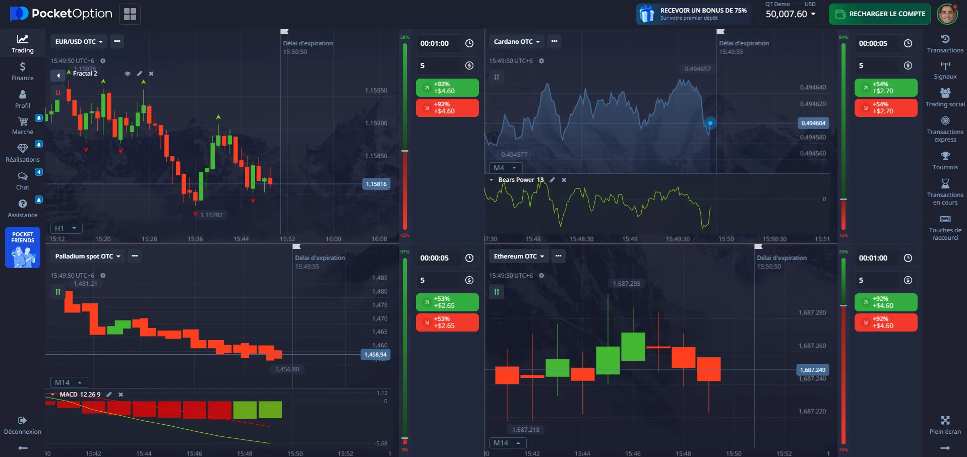 Pocket Option est une plateforme innovante qui évolue constamment et s’adapte aux besoins des traders modernes. Voici ce qui rend leur plateforme PC exceptionnelle :