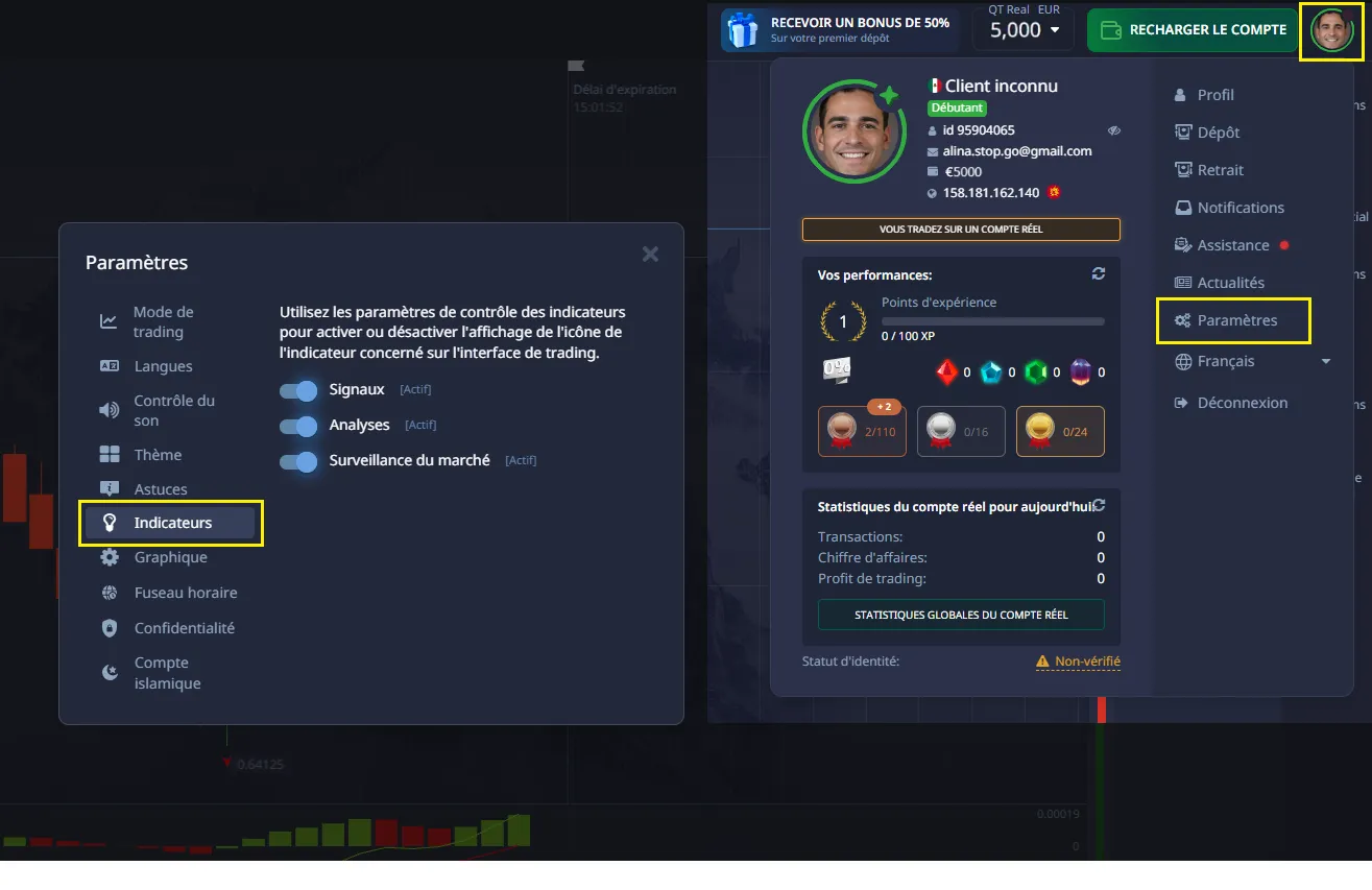 Toutes vos activités de trading réelles restent dans Pocket Option.