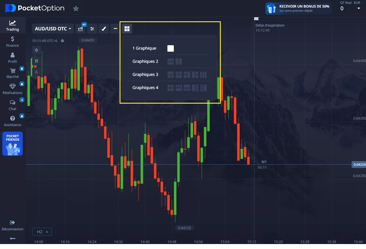 - Utiliser plusieurs moniteurs : Si vous avez plus d’un moniteur, l’application Pocket Option vous permet de les utiliser efficacement en plaçant différents composants d’interface sur les écrans. Cela améliore considérablement la visibilité du marché et supporte l’analyse approfondie.